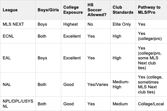 • EAL clubs generally also participate in MLS NEXT or have close ties to the league, giving families more options.